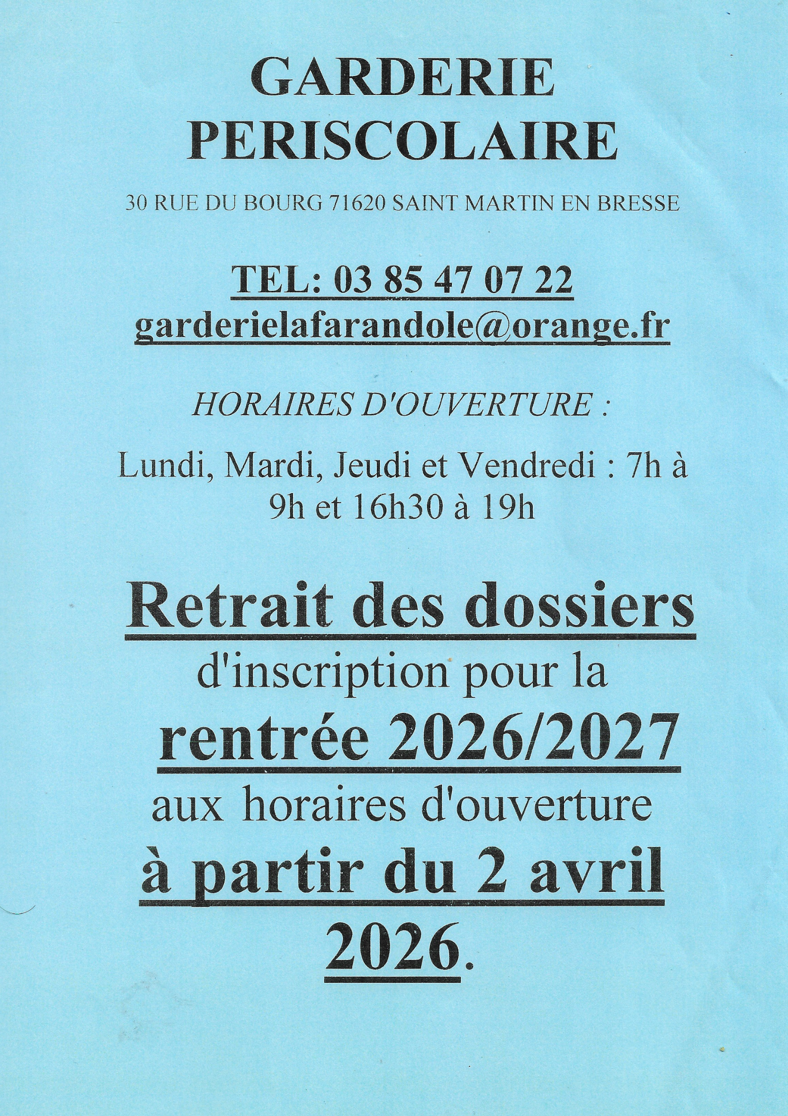 INSCRIPTIONS GARDERIE